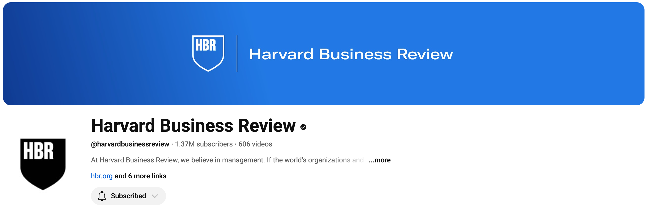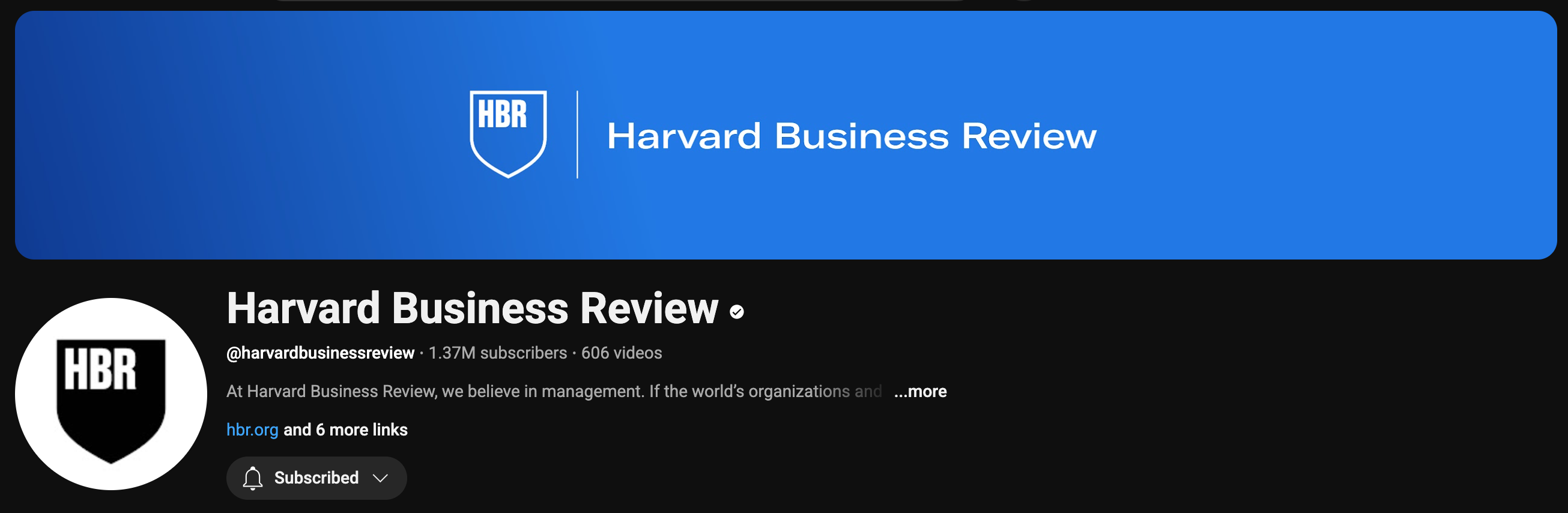 The Harvard Business Review YouTube channel shares ideas, research, and commentary on leadership, strategy, management, and organizational performance. It aims to help professionals and executives make smarter decisions, lead teams, and navigate change.