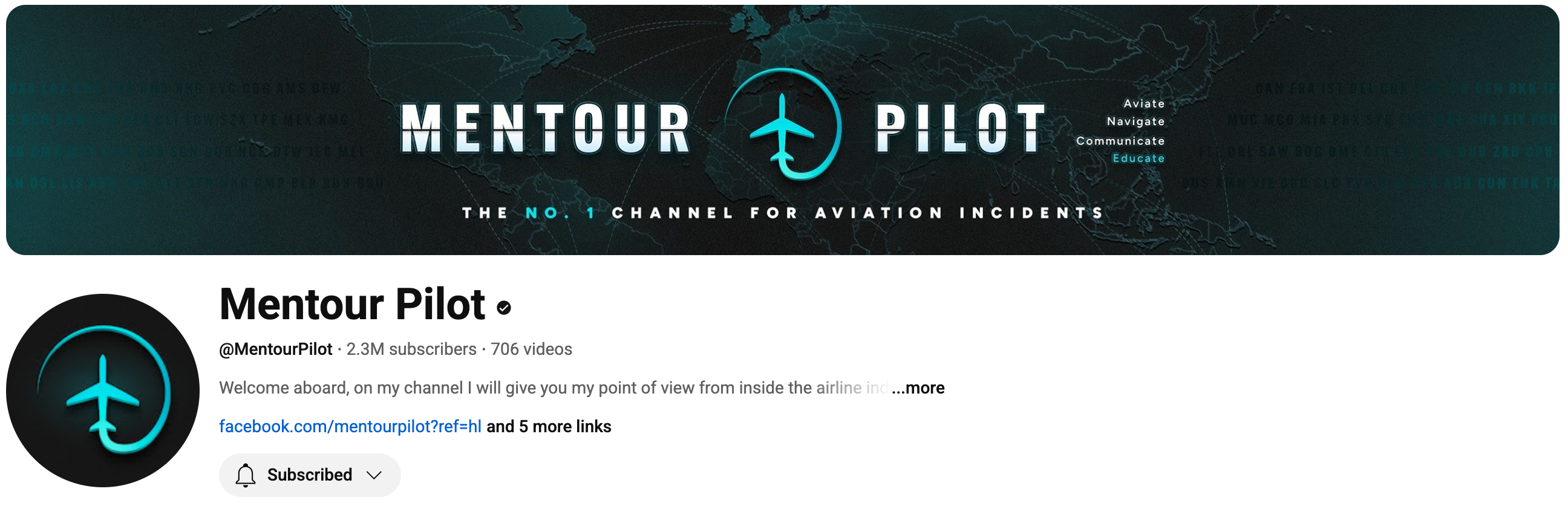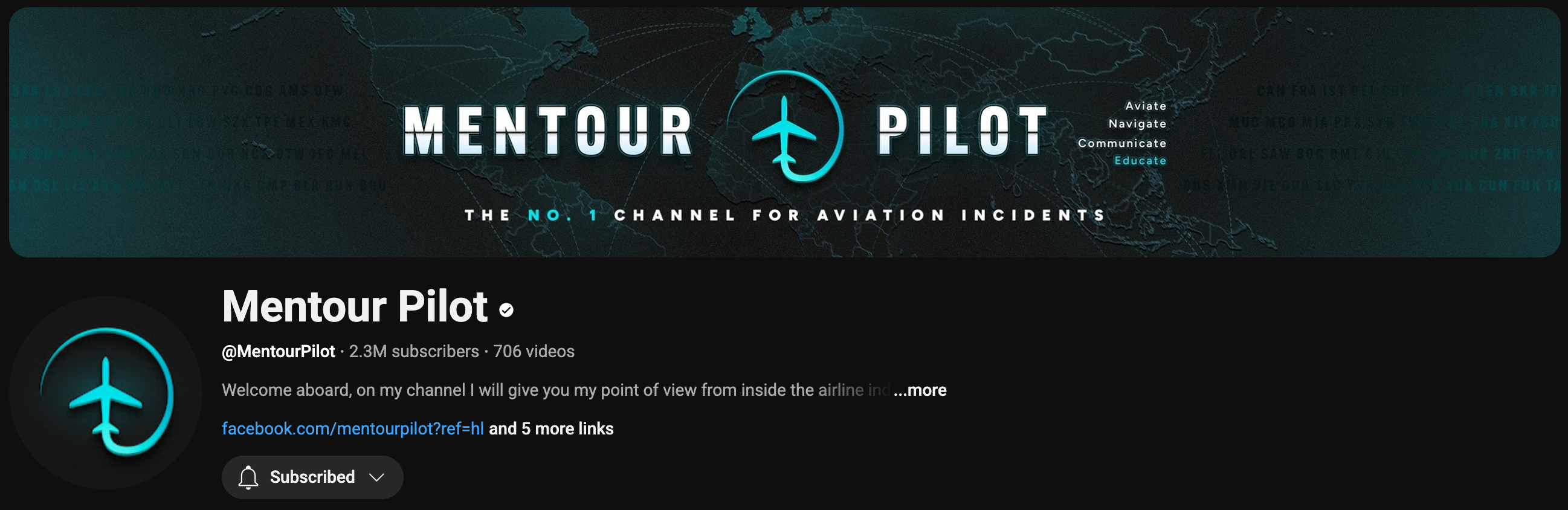 Mentour Pilot offers a behind-the-scenes view into the aviation industry, covering accident investigations, flight procedures, pilot decision-making, and other technical aspects of flying. Its host draws on real experience to explain how and why things happen in the sky.