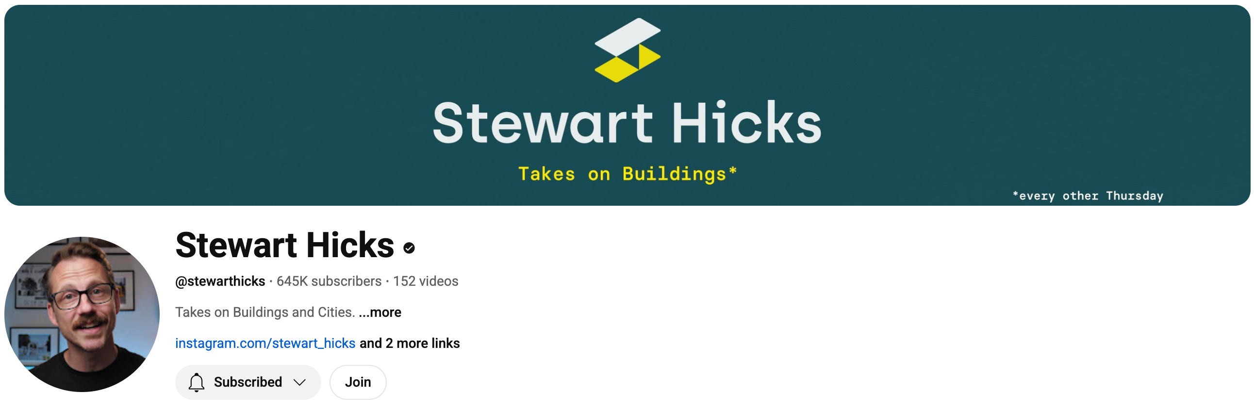 Stewart Hicks explores the intersection of architecture, urban design, and society through compelling case studies and disaster analysis. His channel examines how buildings and cities respond to extreme challenges, from structural failures to security threats, revealing the hidden engineering and design decisions that shape our built environment.
