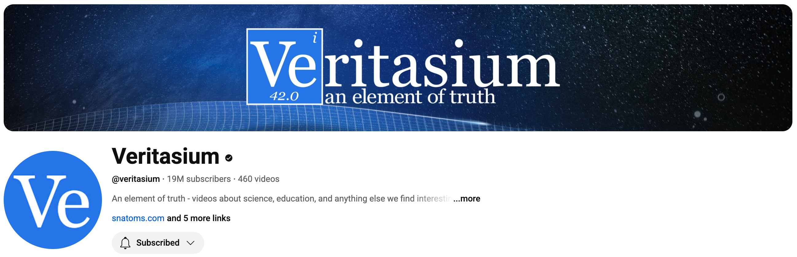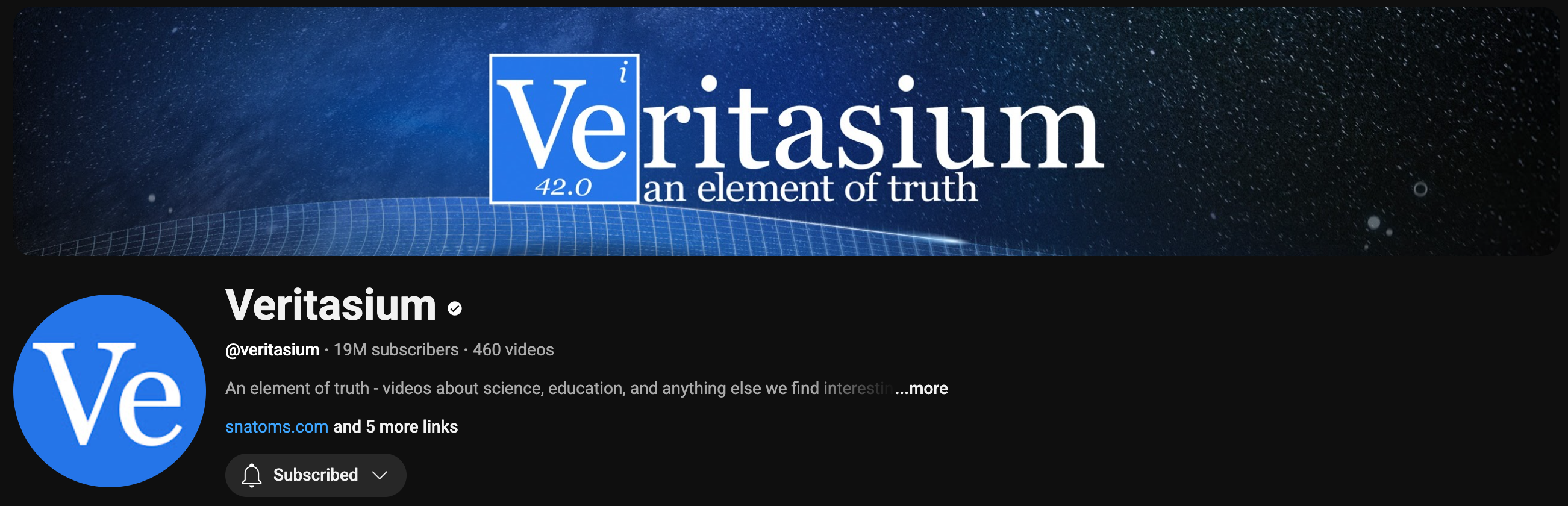 Created by Dr. Derek Muller, Veritasium explores science, engineering, mathematics, and misconceptions. The channel presents experiments, interviews, and deep dives into surprising or counterintuitive phenomena, aiming to challenge and refine how we understand the world.