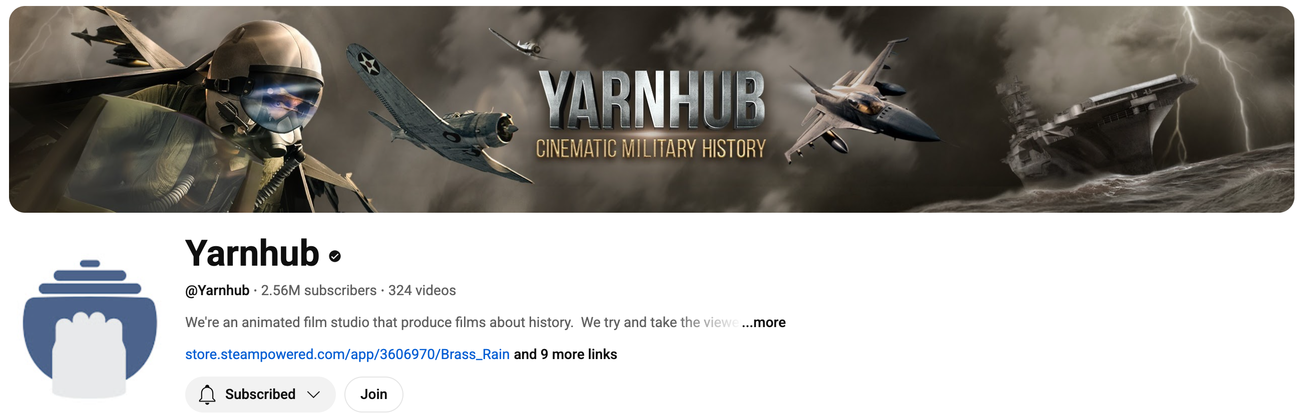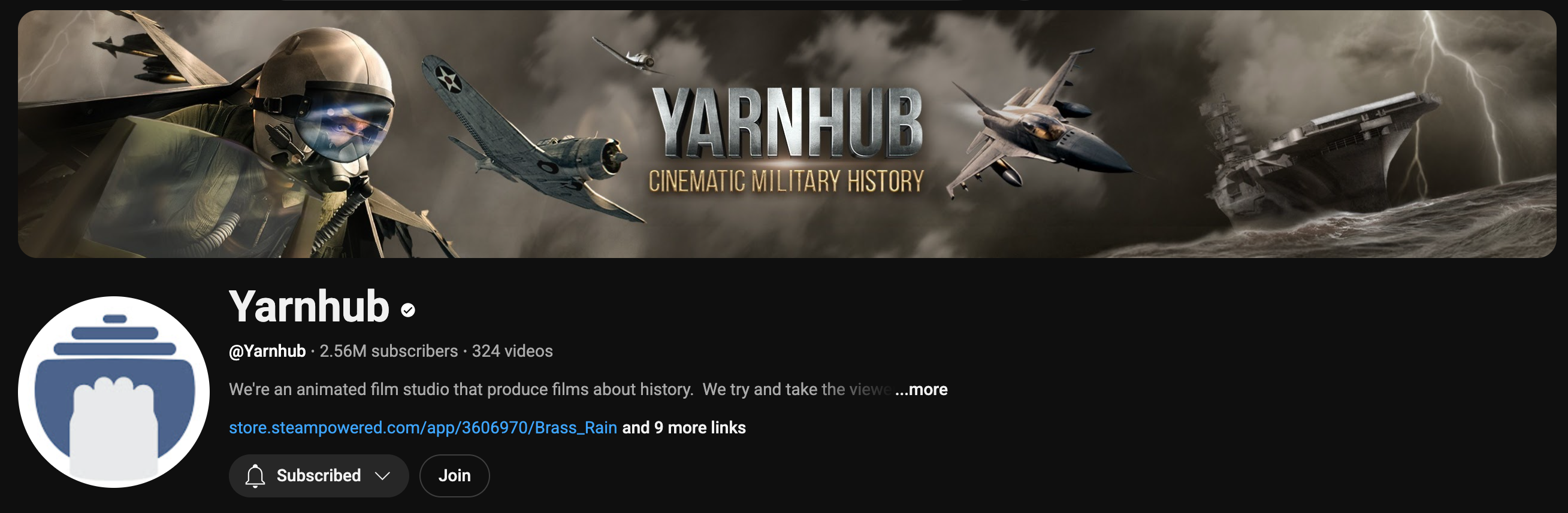 Yarnhub is an animated storytelling studio that brings historical narratives to life. Their videos dramatize historical events by placing viewers in immersive perspectives rather than delivering them as detached lectures.